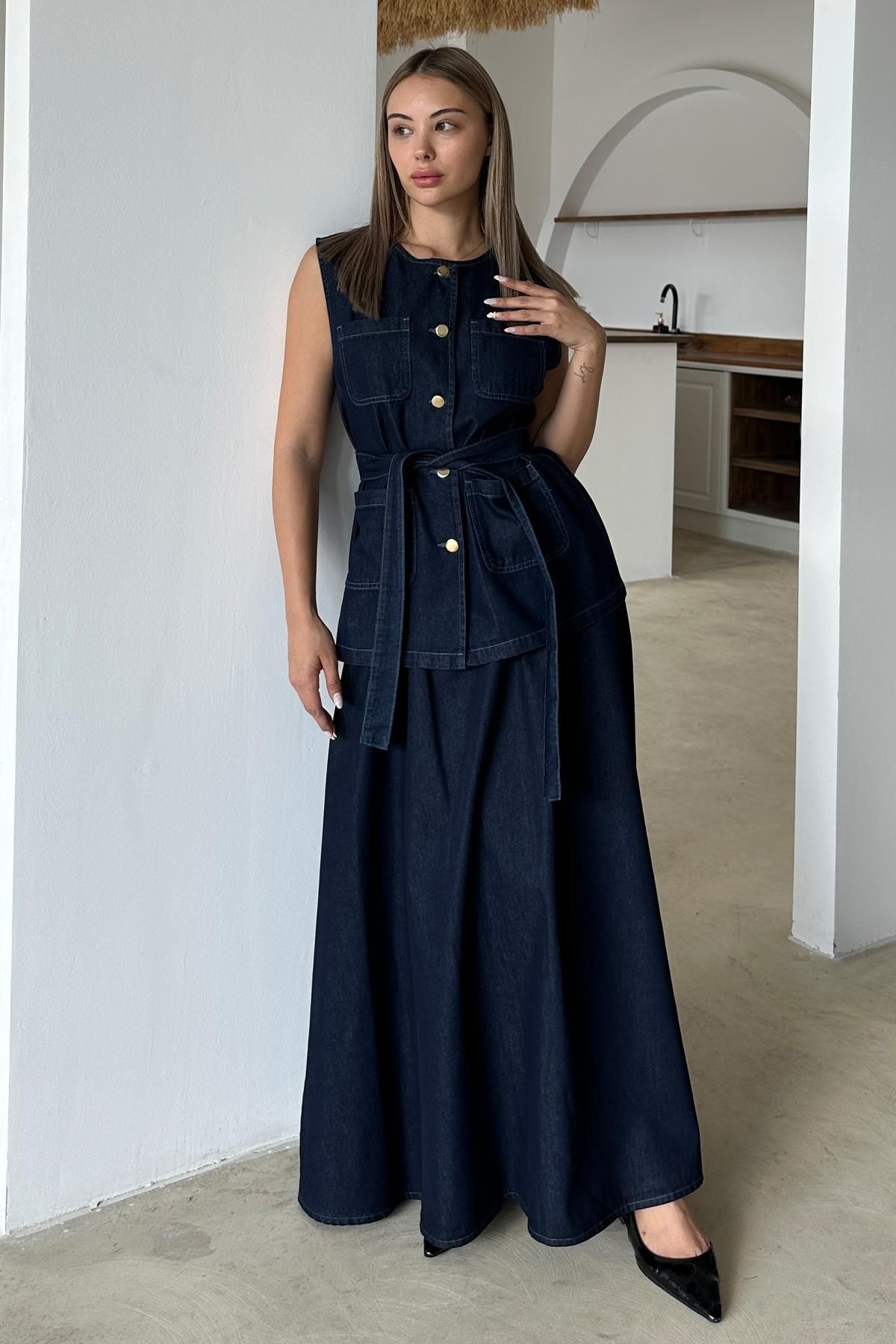 Mankenin üzerindeki ürün ve ölçüleri: S beden. Göğüs: Yelek:96cm, Bel: Yelek:96 Etek:70 cm, Basen: Yelek:118 Etek:114cm.