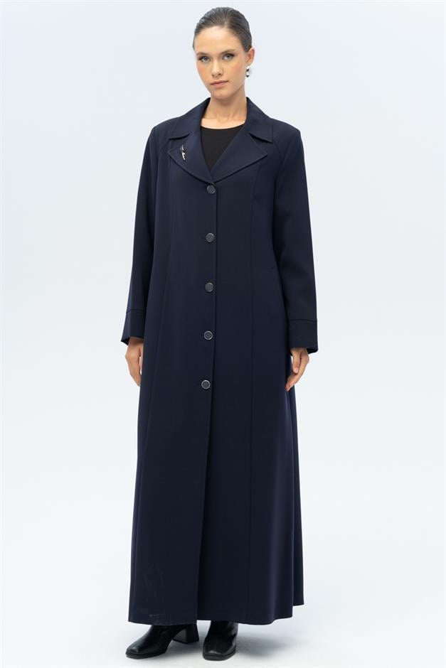 Ceket Yaka Broş Detaylı Astarlı Büyük Beden Pardesü LACİVERT 6691-A