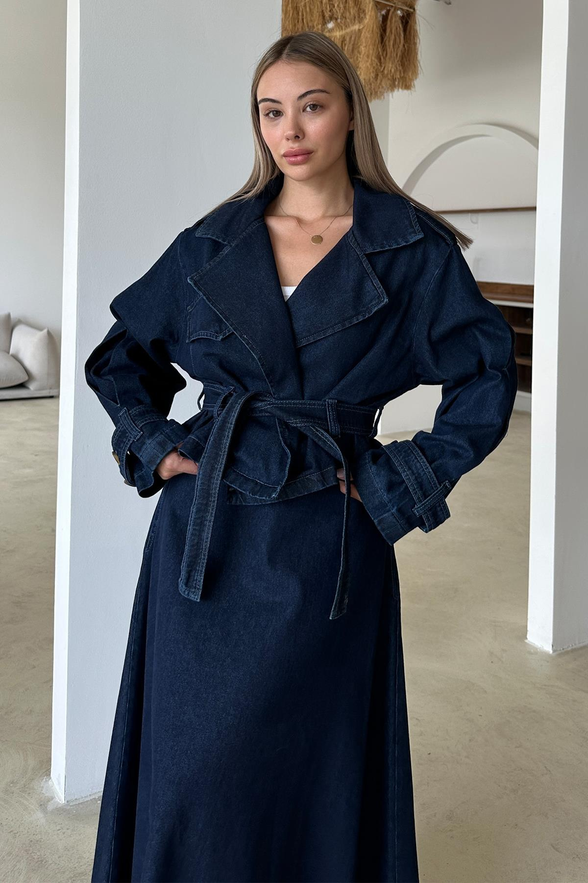 Crop Denim Jacket with Belt Detail DARK BLUE 8277