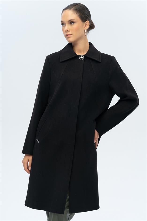 Gömlek Yaka Punto Detaylı Büyük Beden Kaban SİYAH 3117