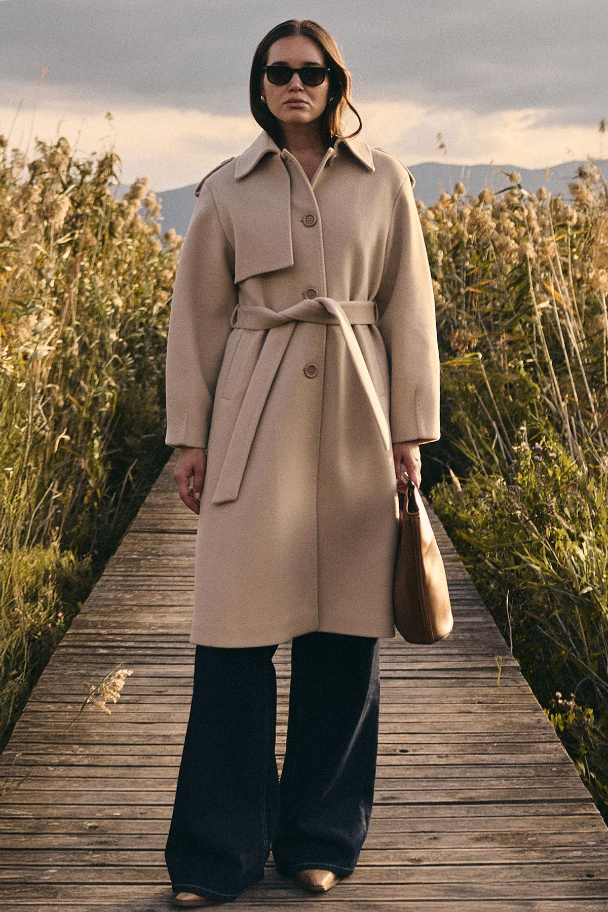 Gömlek Yaka Punto Dikiş Detaylı Premium Kaban BEJ 3125
