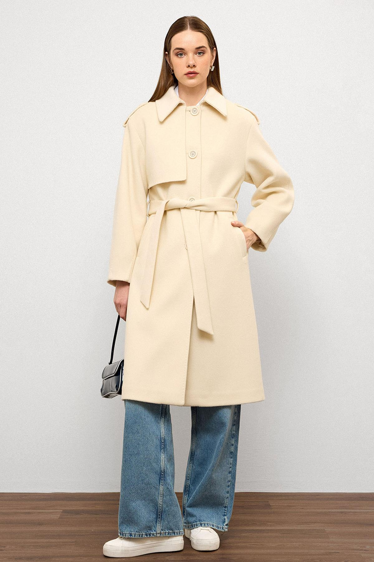 Gömlek Yaka Punto Dikiş Detaylı Premium Kaban EKRU 3125