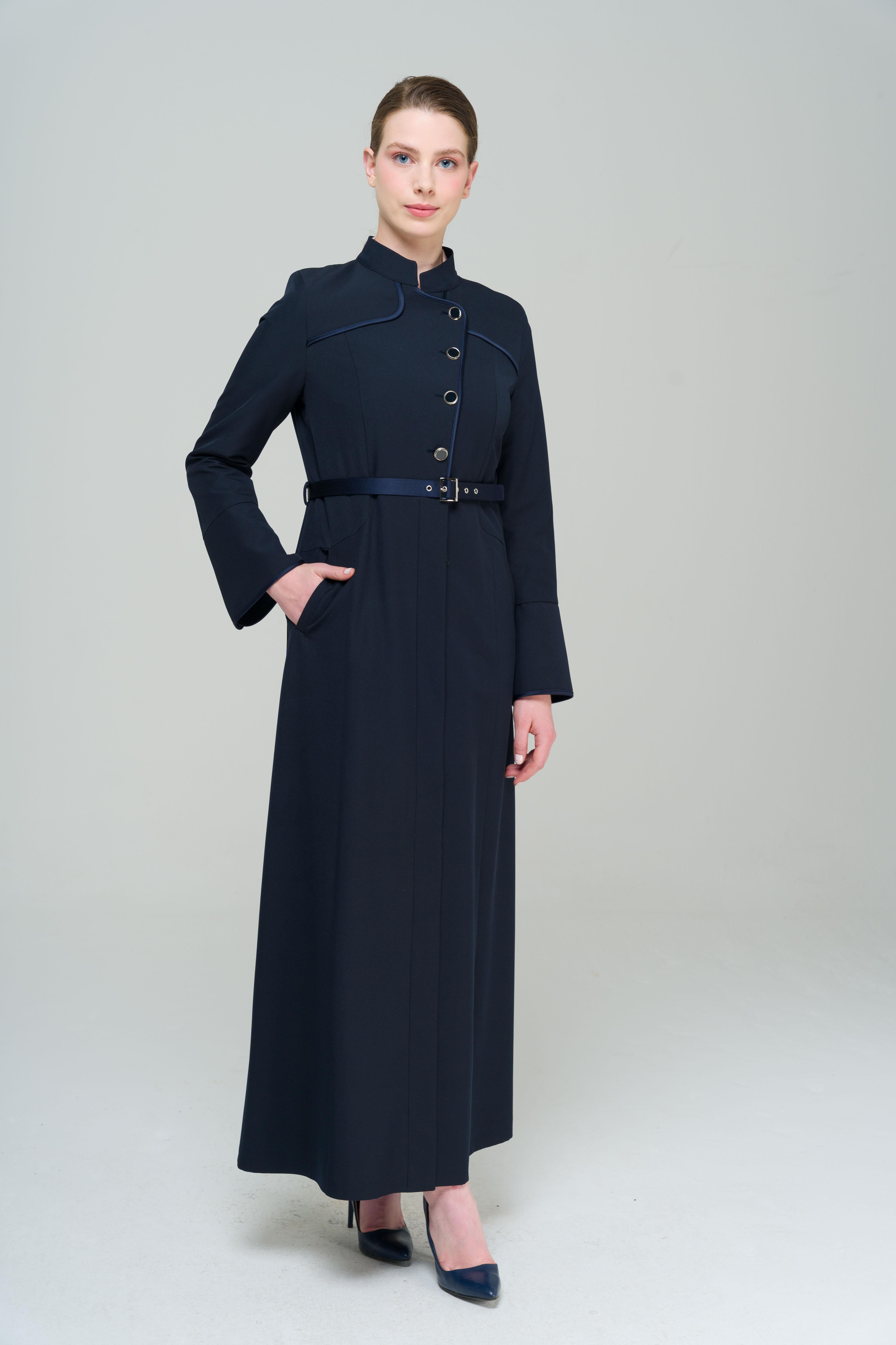 Hakim Yaka Kemer ve Saten Detaylı Astarlı Pardesü LACİVERT 6563