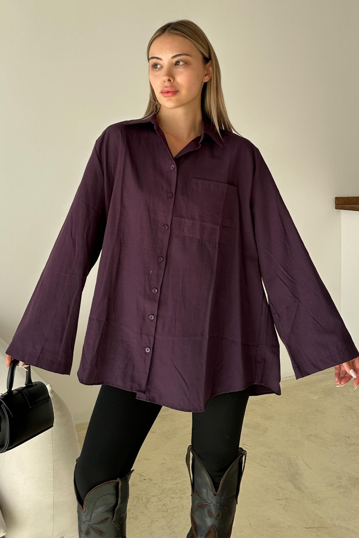 İspanyol Kol Salaş Pamuklu Gömlek MÜRDÜM 9365