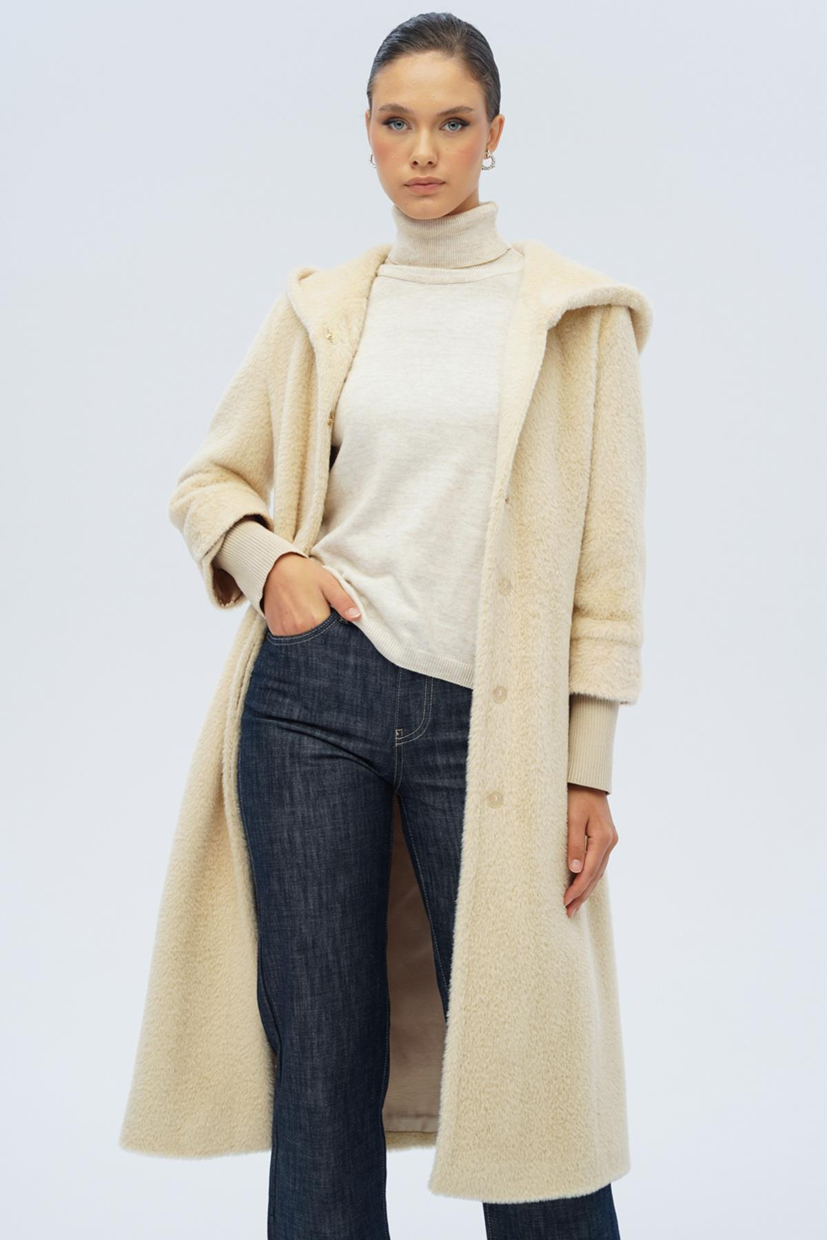Kapüşonlu Ribana Detaylı Pelüş Kaban BEJ 3118