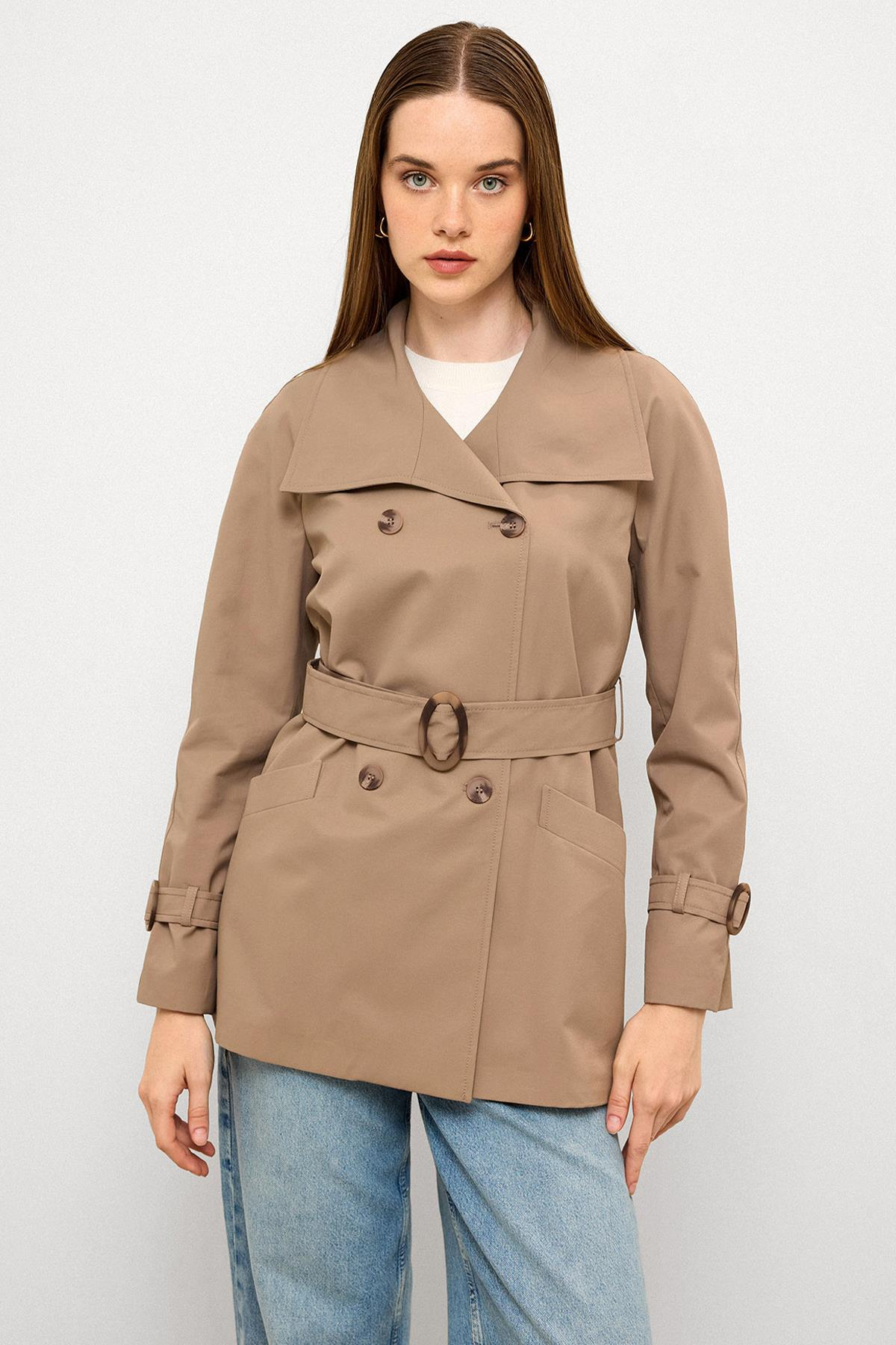 Kruvaze Reglan Kol Su İtici Özellikli Kısa Trençkot S.KAHVE 6762
