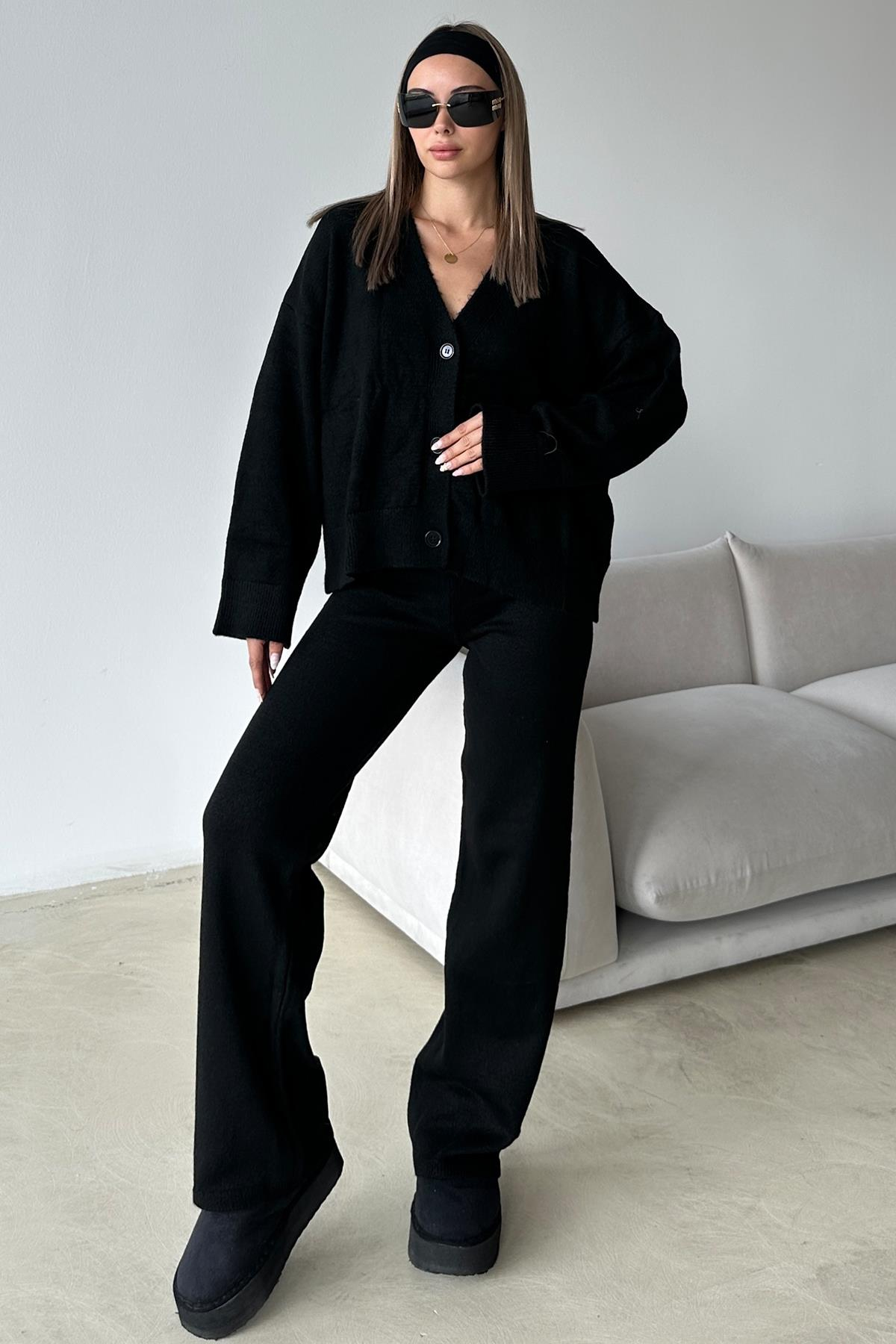 V Yaka Hırka Pantolon Triko Takım SİYAH 9368-TK