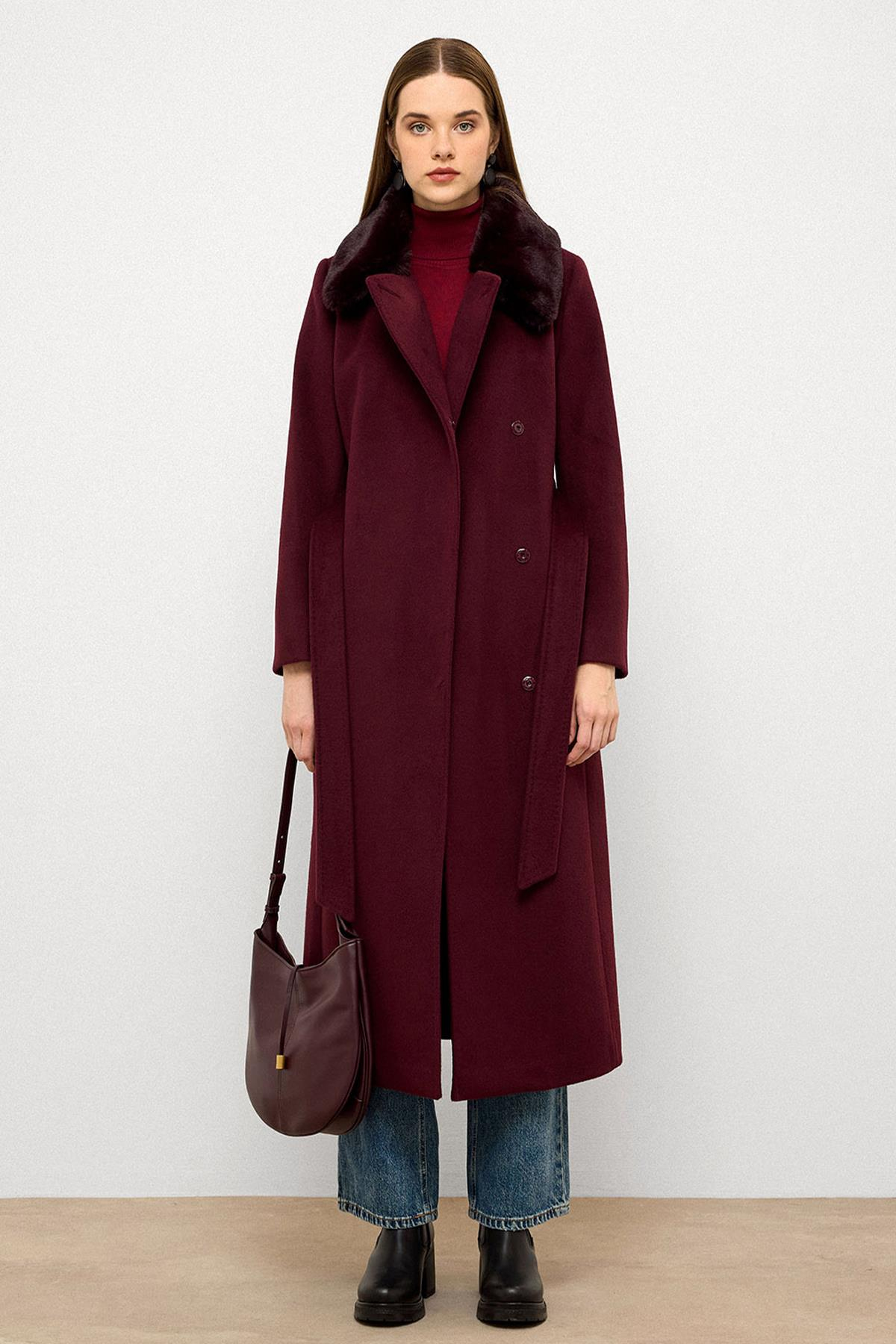 Yakası Çıkabilen Kürklü Punto Dikiş Detaylı Premium Uzun Kaban MÜRDÜM 3092